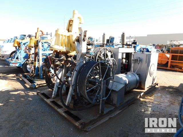 2011 VENTURE TECH XK-150 Skid Mtd. Power Swivel S/N 8607, w/Remote Control Panel w/Stand & 100' Air Hose, (3) Stiff Arms, Pull Master Winch w/in/out controls, Hydraulic Hose Spool w/150' Hose w/in/out controls, 110 Gal. Hydraulic Tank w/Internal Heater, 100 Gal Fuel Tank, Hyd/Fuel Tank Insulating Blanket, p/b CAT C9 ACCERT Diesel Engine w/Electric Start S/N JSC19071 w/CAT Tu-Flo 550 Compressor S/N 1K1810T179, 5521 Hours, 7'6"W x 16'L x 10'H Skid.
